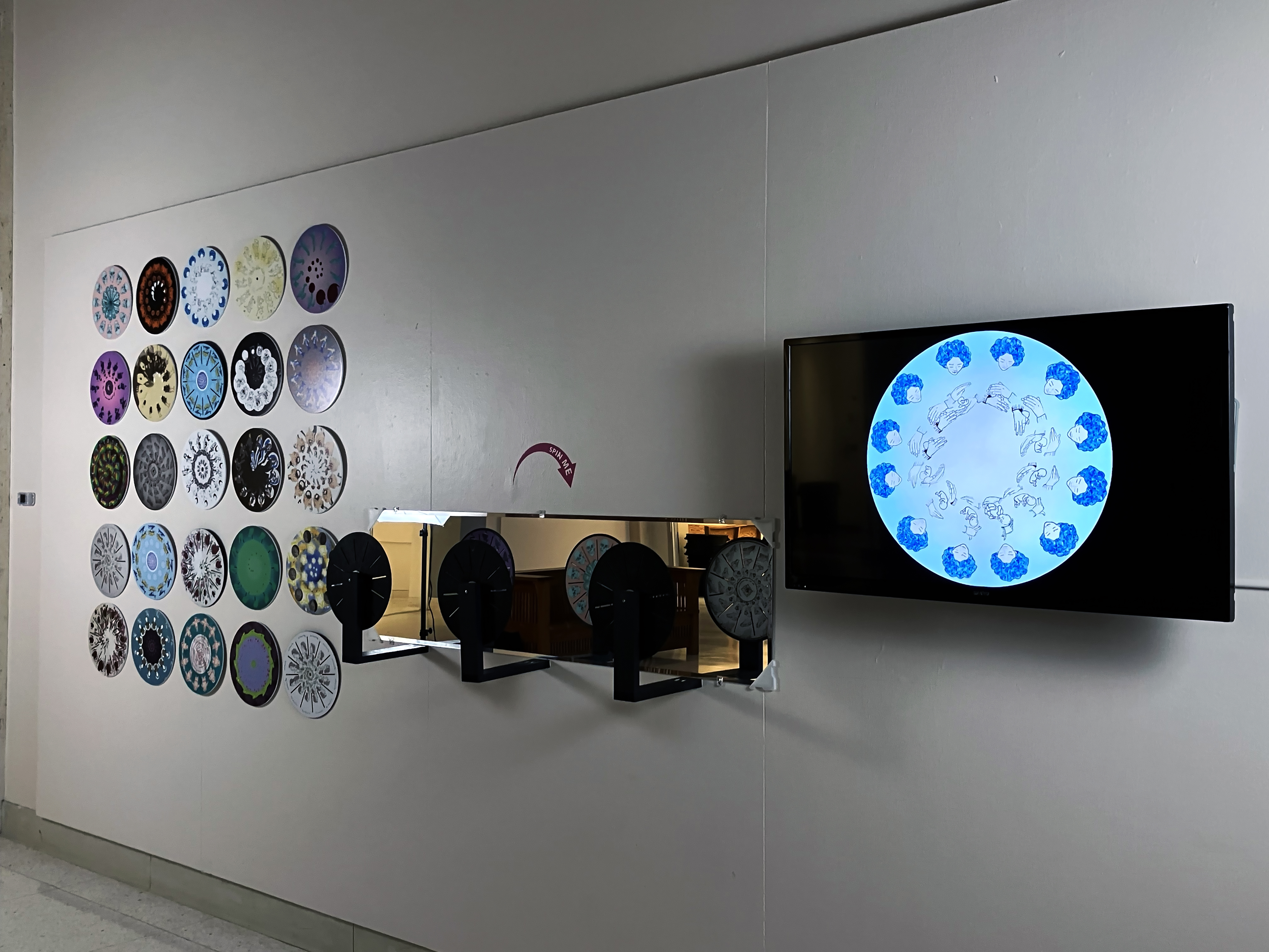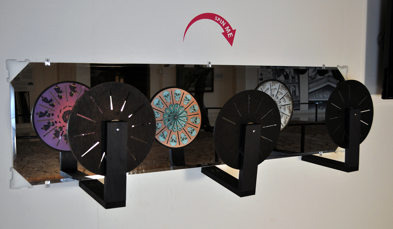 Our work was an interplay between analog and digital, tactile and ephemeral. This included repurposing ‘obsolete’ media devices and bringing digital animation to the tangible realm through laser cutting and hands-on experimentation. Proto-animation devices from the 19th century hold a special place in our practice, compelling us to think differently about animation conceptually and visually and extend the moving image beyond the two-dimensional screen.