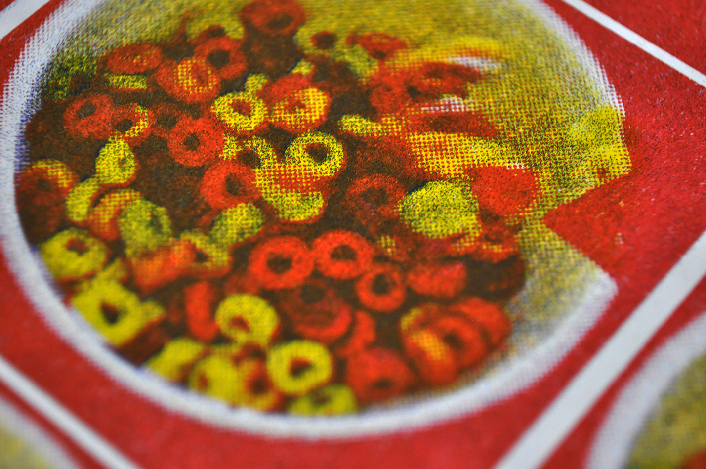 The full source film, captured on Black Magic camera by fellow MFA student Andrew Ina, is of pouring Froot Loops and milk into a bowl, with my son then eating the Froot Loops until the bowl is empty.