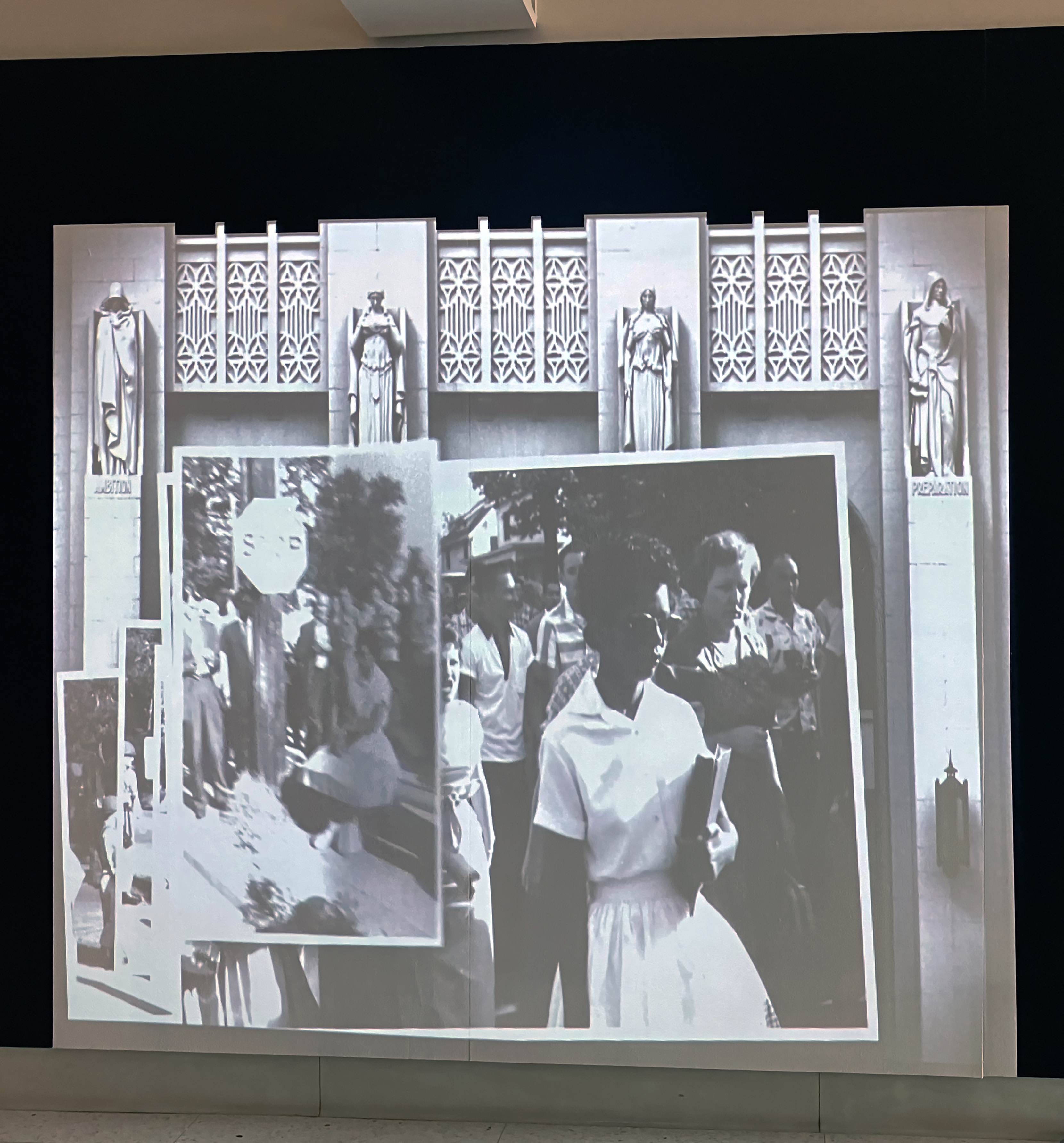Little Rock Central High School is a National Historic Site and is the only operating high school in the United States to receive such designation. In 1927, the newly constructed Central High was named “America’s Most Beautiful High School” by the American Institute of Architects. In 1957, the school made international news headlines as nine Black students were denied entry in defiance of federal desegregation law, in what became known as the Little Rock Central High Desegregation Crisis. Imagine if Buildings Could Talk is a nine-minute animation that was projection mapped on the school building’s main entrance to commemorate the 90th anniversary of the building’s construction and the 60th anniversary of the Central High desegregation crisis. The animation was designed around four themes: the building’s construction; the student perspective using 90 years of yearbook photos; the desegregation crisis featuring the famous photos by Will Counts; and a message for a bright future inspired by the school’s commitment to diversity.