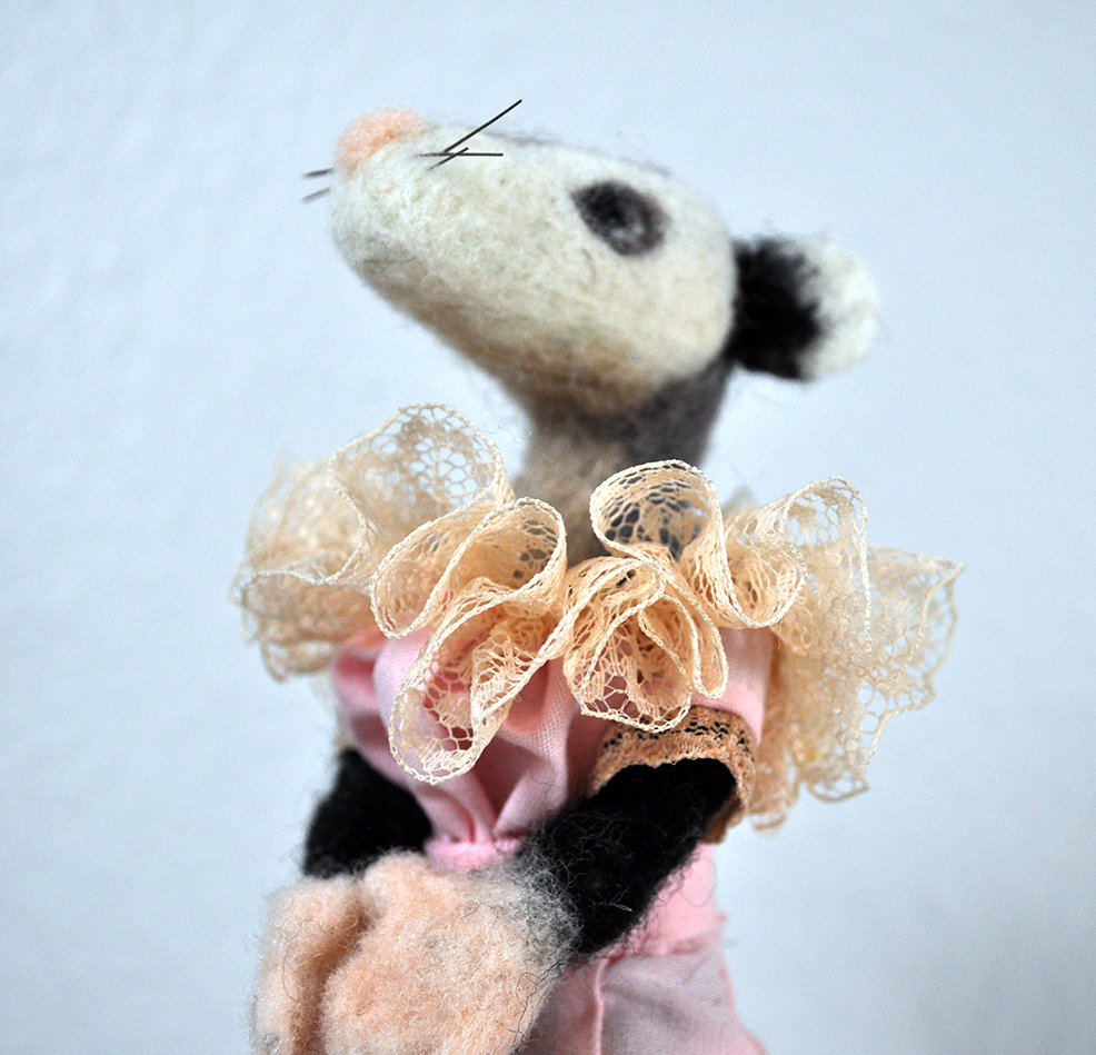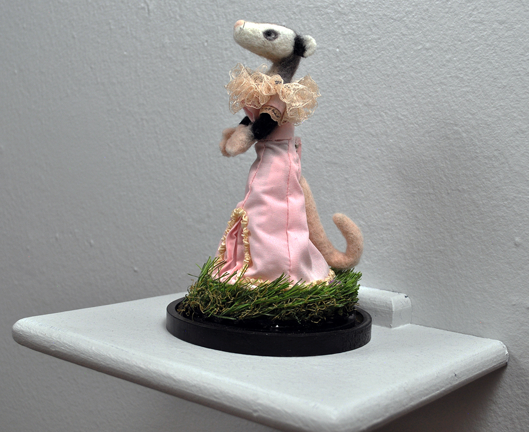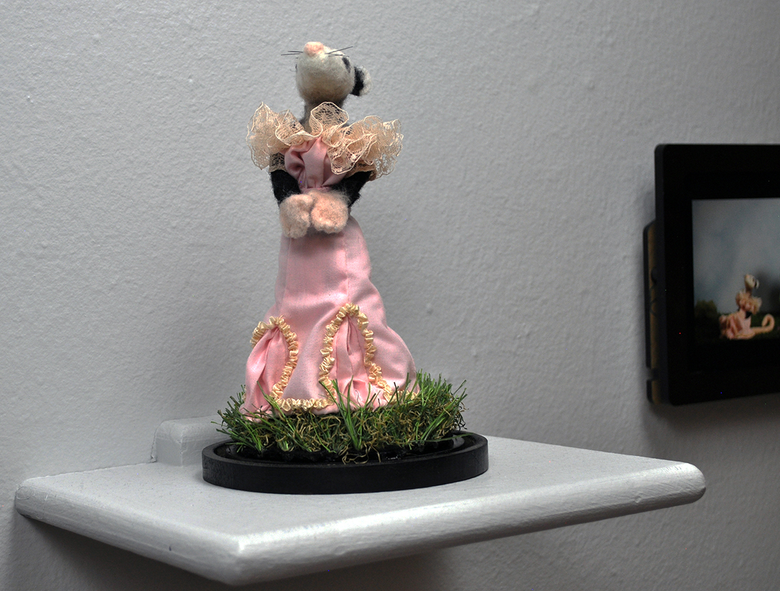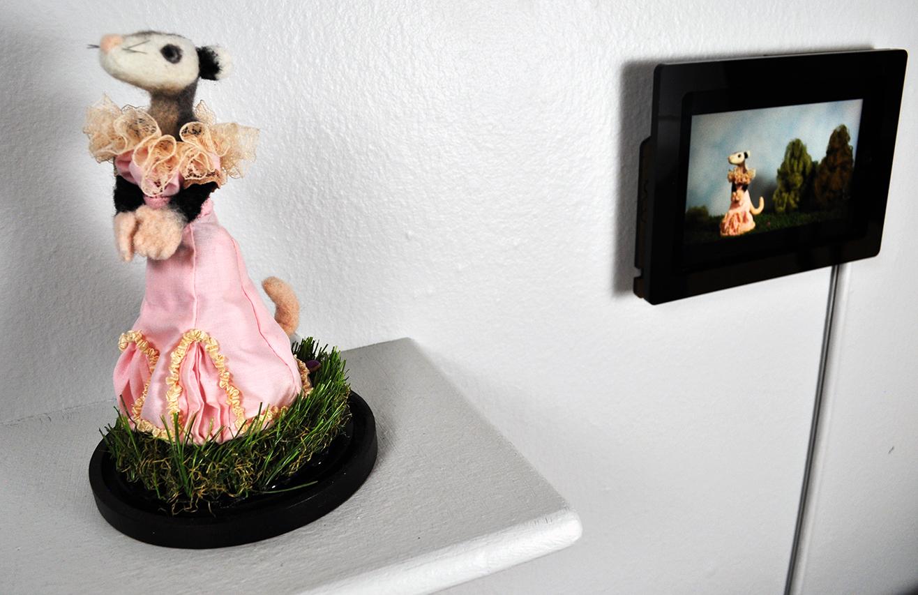 In the short, Daisy, the opossum, is hit in the head with a ball thrown by an off-screen character. She instinctively plays dead but immediately collects herself as the stiff norms of the period require. Seeing someone dressed in a ball gown from the 19th century acting unexpectedly helps bring back life and relatability to something that seems to belong to the distant past.